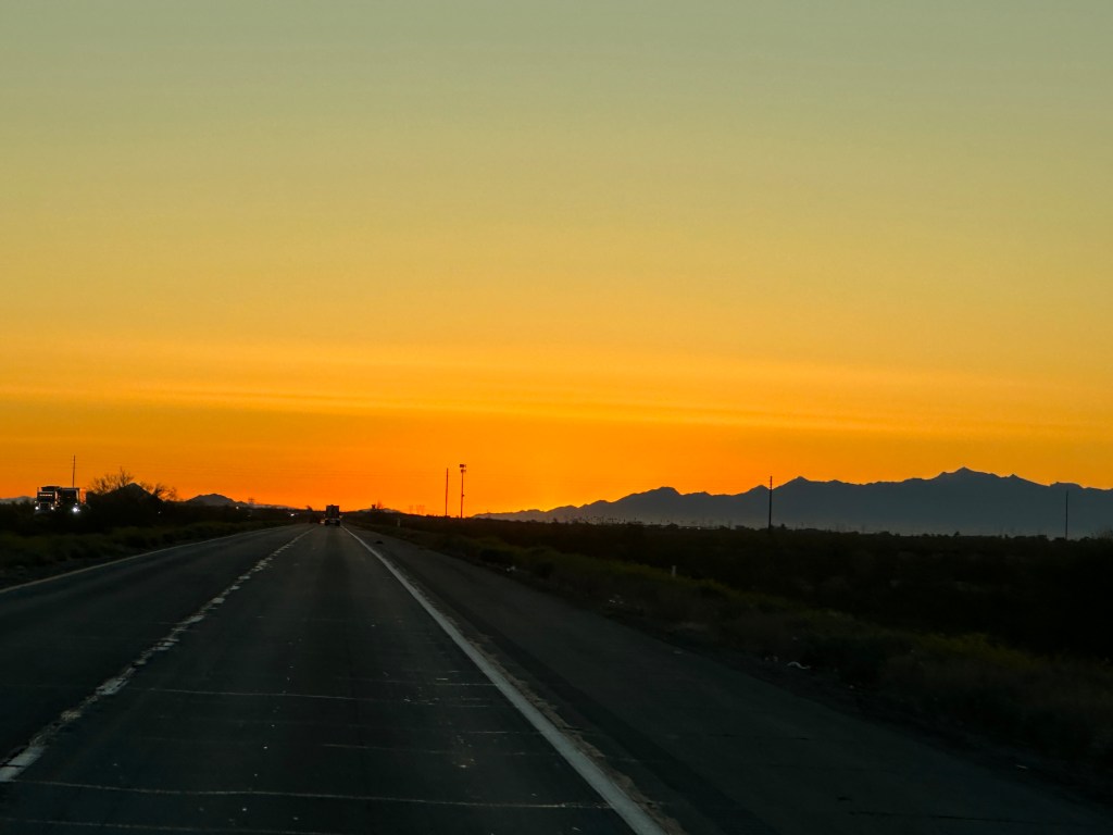 The next morning, back on the road very early, this time hoping again to cover most of the travel before the workday started, which was possible due to the time change. The sunrises continued to amaze.