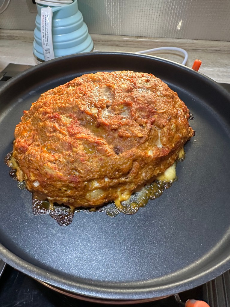 For dinner, Micki made meatloaf with turkey burger, mashed potatoes, and green beans.