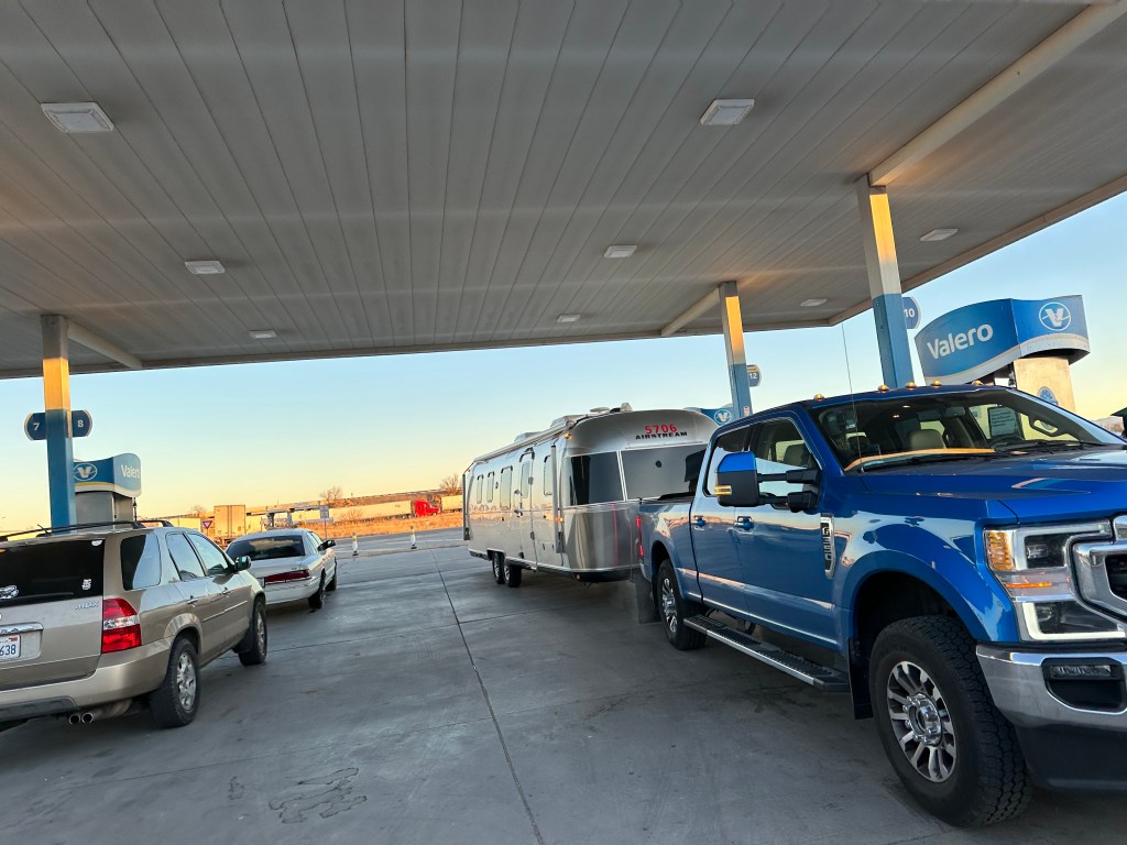 Getting gas is always an experience with the Mouse House, and we don’t have the luxury of disconnecting first.
