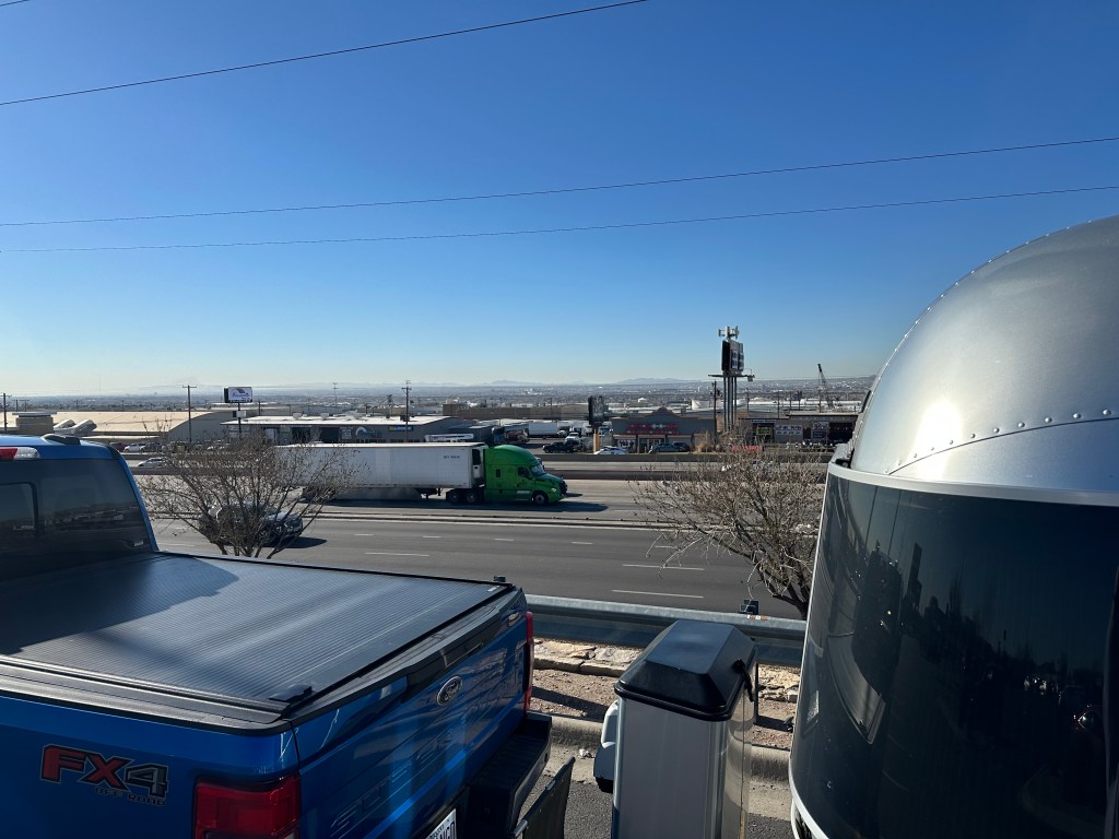 Our morning work stop was another Wal-Mart parking lot, this time in El Paso, Texas.