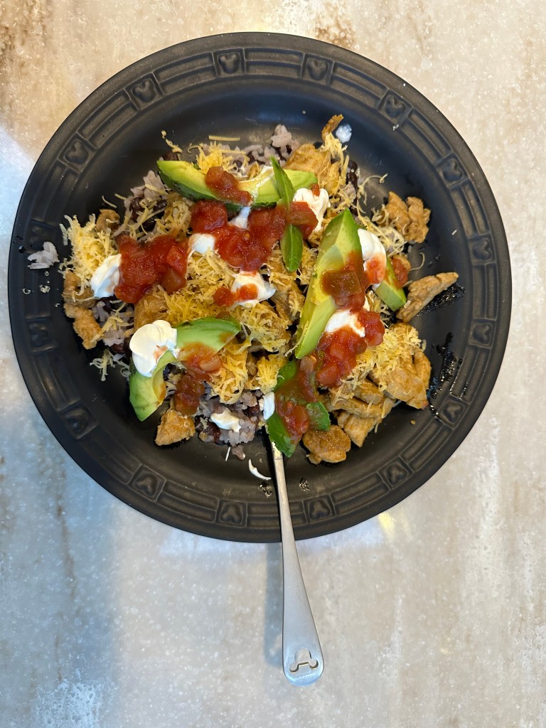 Micki made a delicious southwest chicken dish with beans and rice.