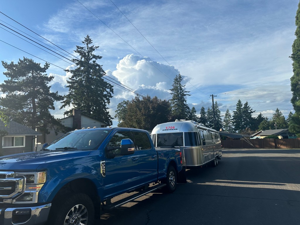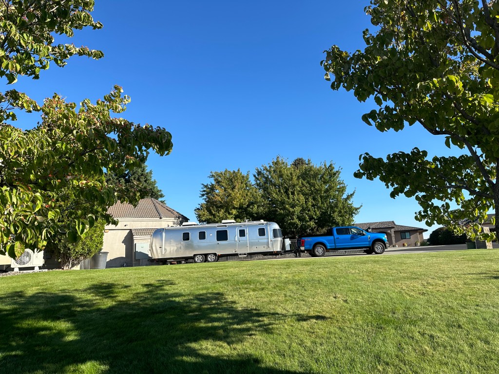 The first short leg of the longer trip was only from the Portland metro area to Tri-Cities, roughly 3½ hours away. I worked all day Friday, so we departed after dinner, and arrived in Tri-Cities well after dark. We stayed in the driveway of a very gracious friend and fellow Airstreamer, turning in for the night only after hanging out over a nightcap.