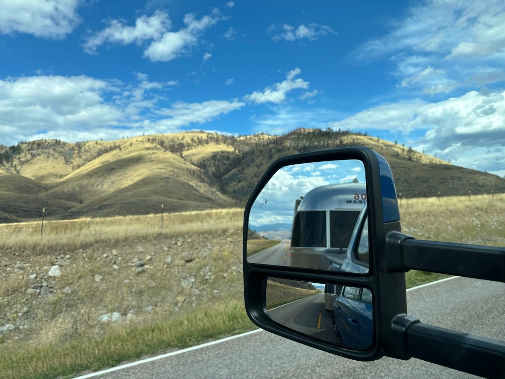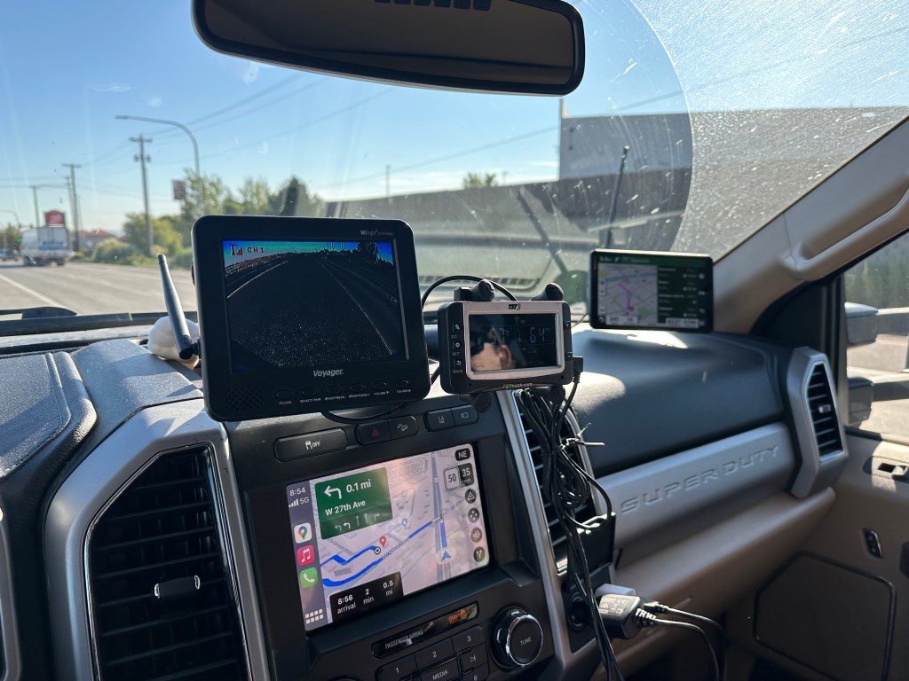 Saturday’s travel took us from Tri-Cities all the way to the West entrance of Glacier National Park, and the drive through northwest Montana was beautiful as expected. Of course we set up all the goofy travel tech in the truck – the rear-view camera monitor, the TPMS monitor, and the Garmin for RVs – each of which adds comfort in its own way.