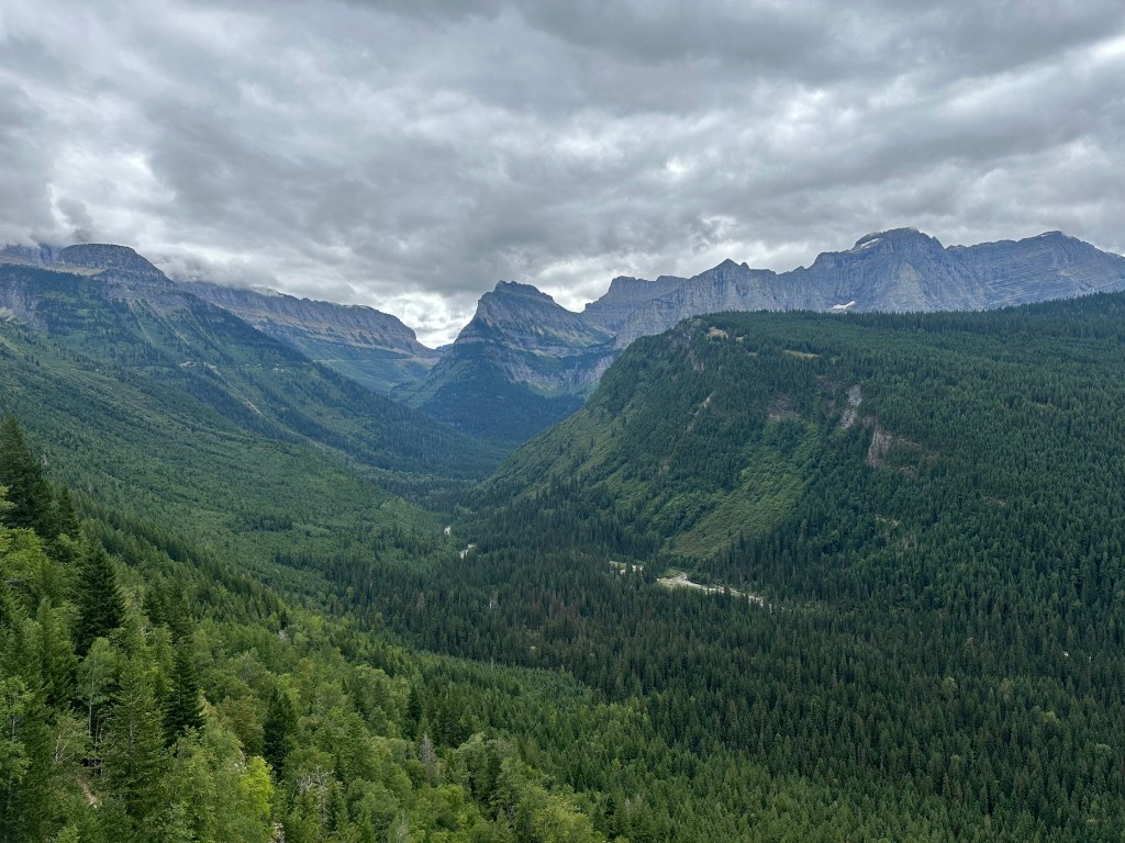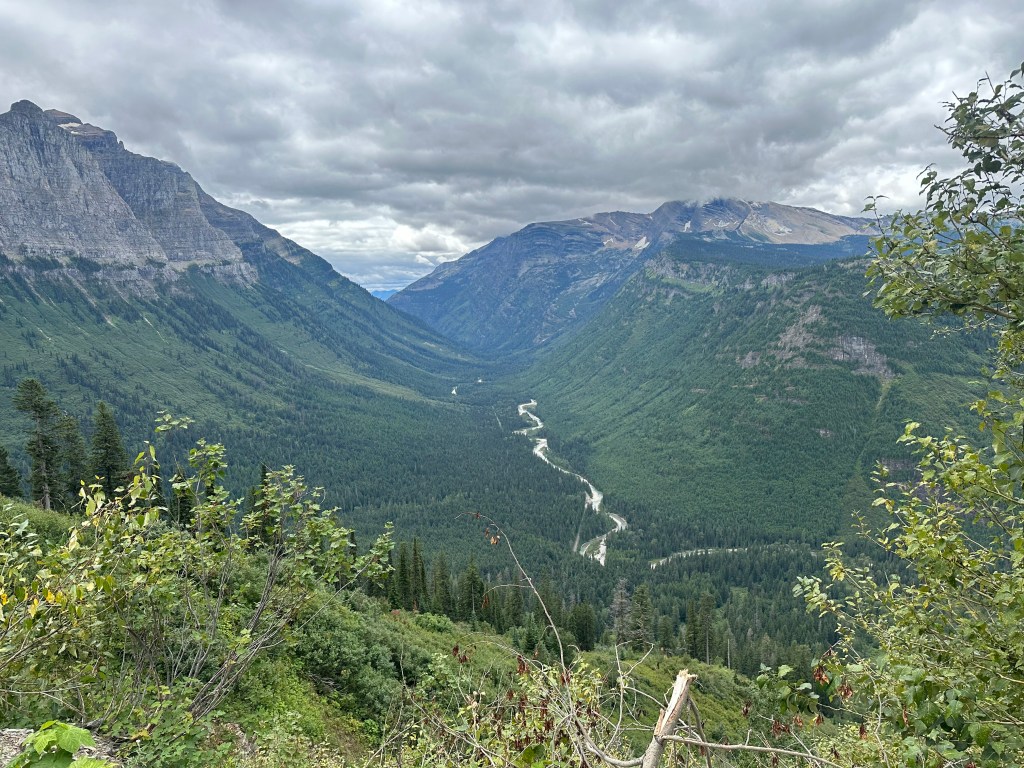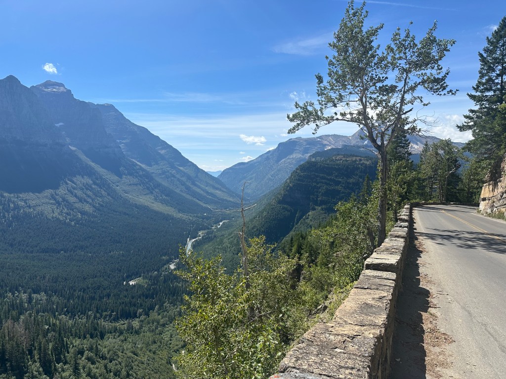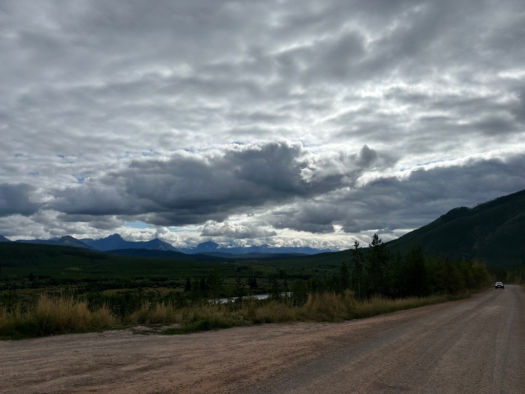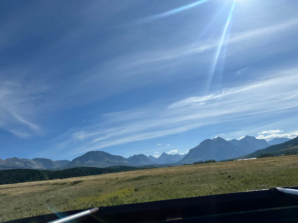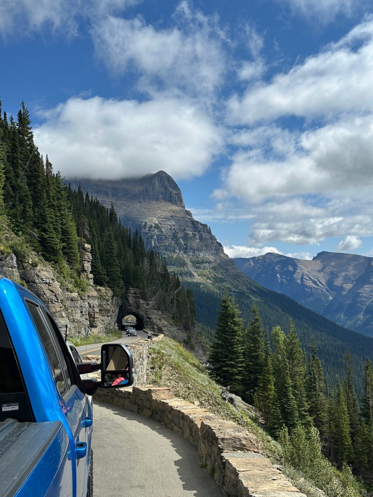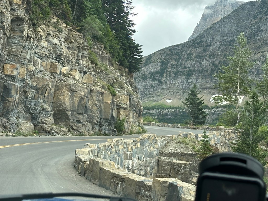 Driving from west to east means either going outside the park to go around the south side on non-park Montana roads or driving across the very narrow but scenic “Going-To-The-Sun” Road over a very high mountain pass. More to come about that…