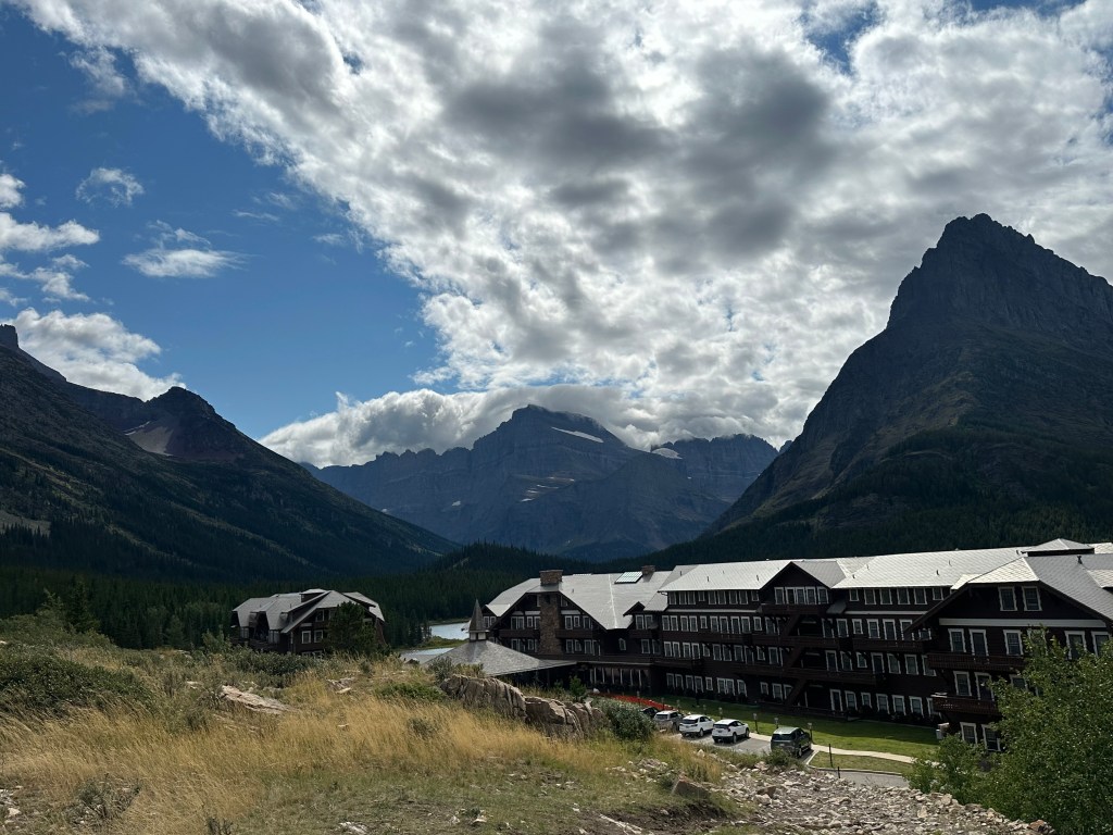 We’re glad we did. Despite again needing to use unpaved roads, the area is very beautiful, with a large Swiss-Chalet lodge on Swiftcurrent Lake, with a view directly to the Grinnell Glacier.