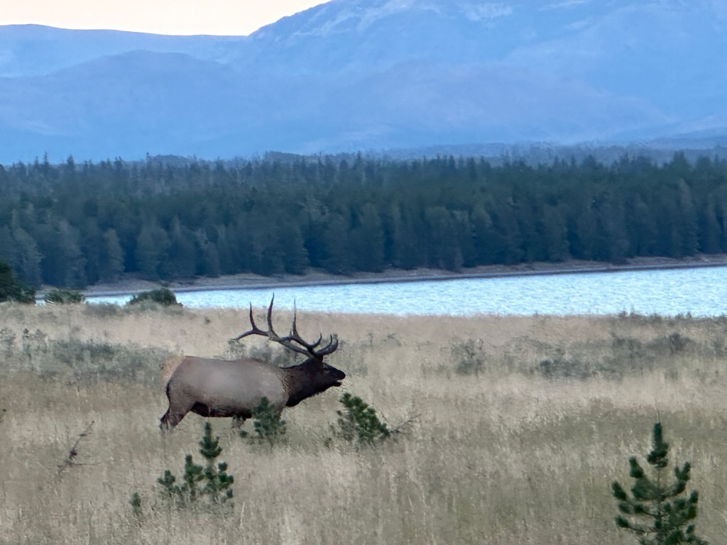 Fair warning: This post includes many photos and videos, starting with the scenery and then proceeding to the animals. I wouldn’t blame you for skimming, but if you’re so inclined, let me urge you to pause on the short vides of the bugling elk and the black bear with her two cubs below.