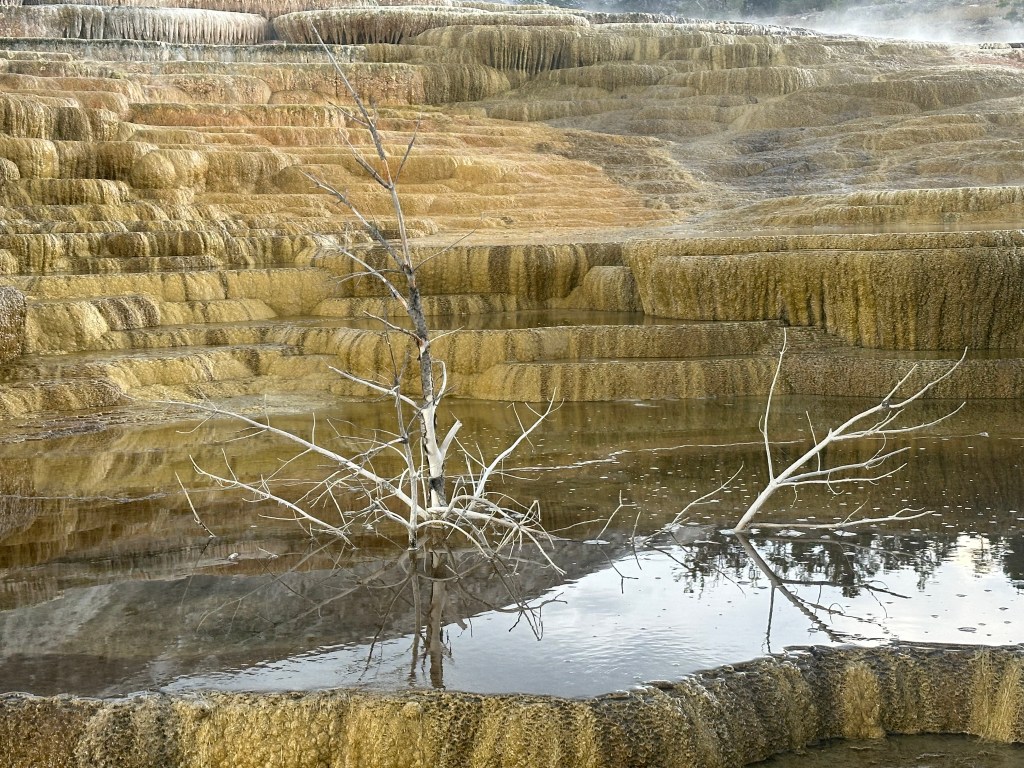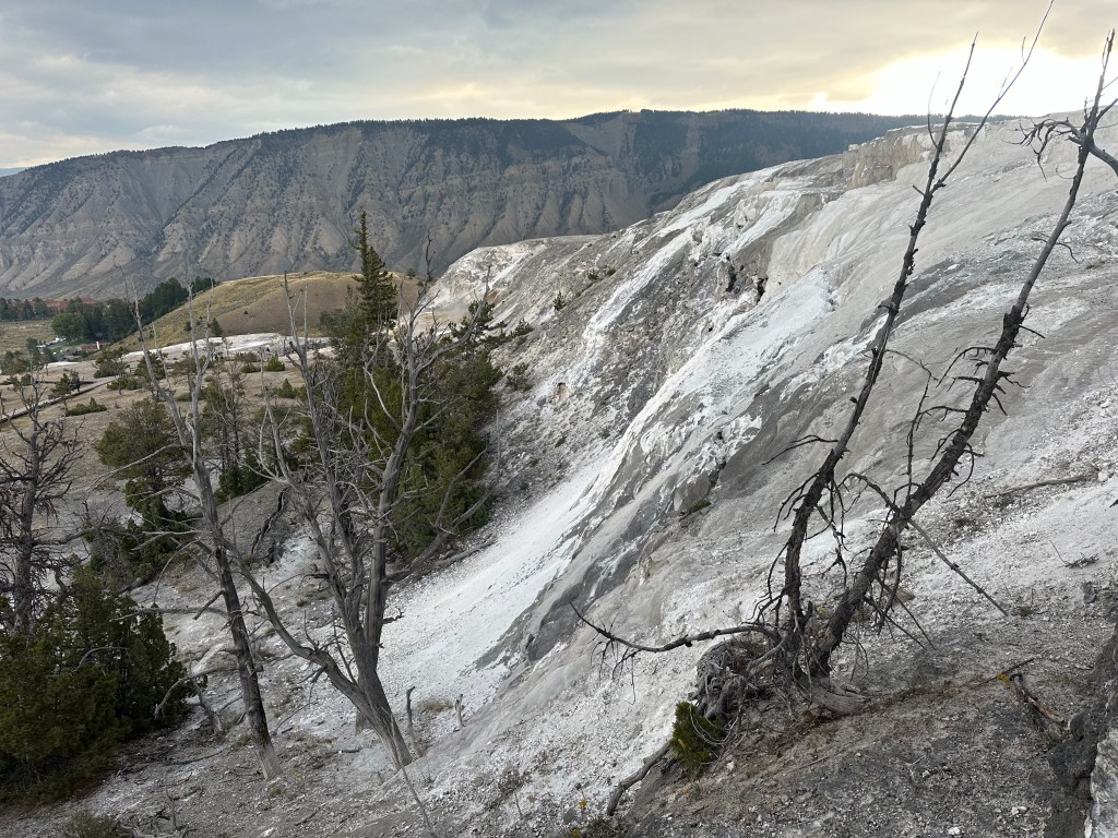 We also visited Mammoth Terrace toward the north end of the park, which is a geothermal area with a distinctly post-apocalyptic vibe.