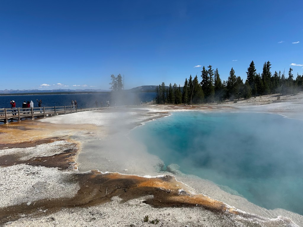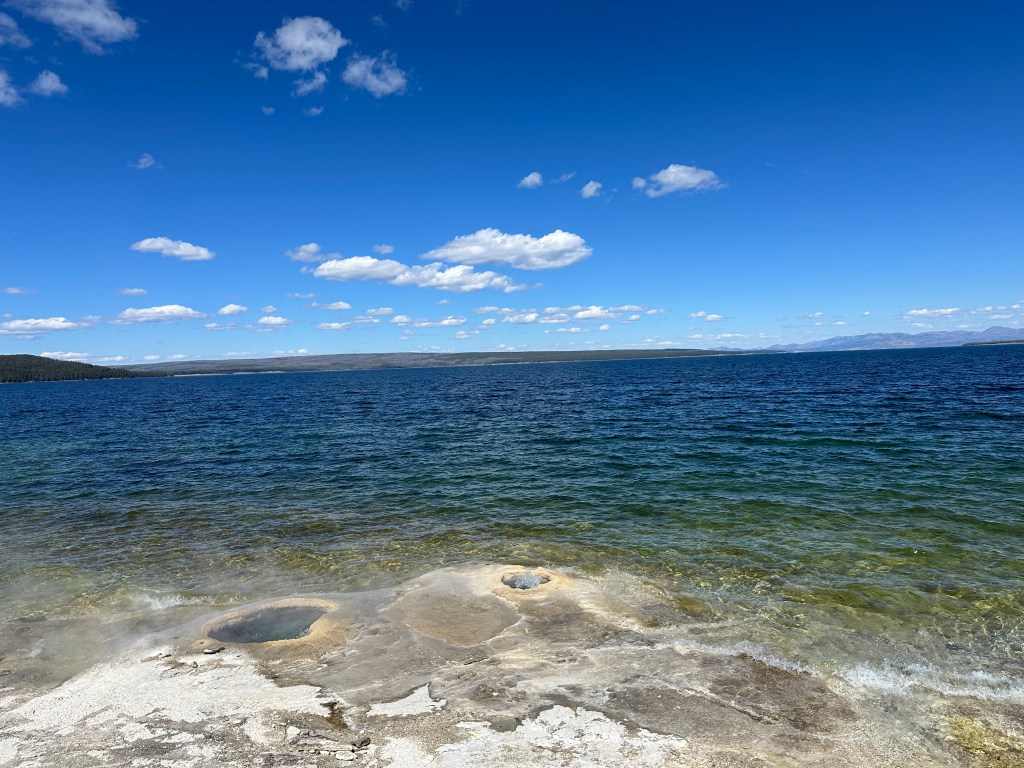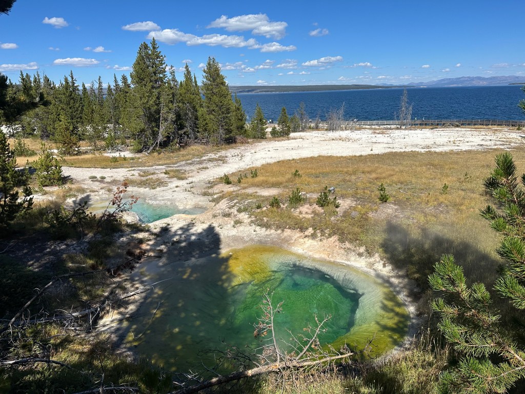 first the scenery, starting with the West Thumb Geyser Basin, which is a geothermal area that rests on the shore of Yellowstone Lake, creating a strange contrast of hot and cold.