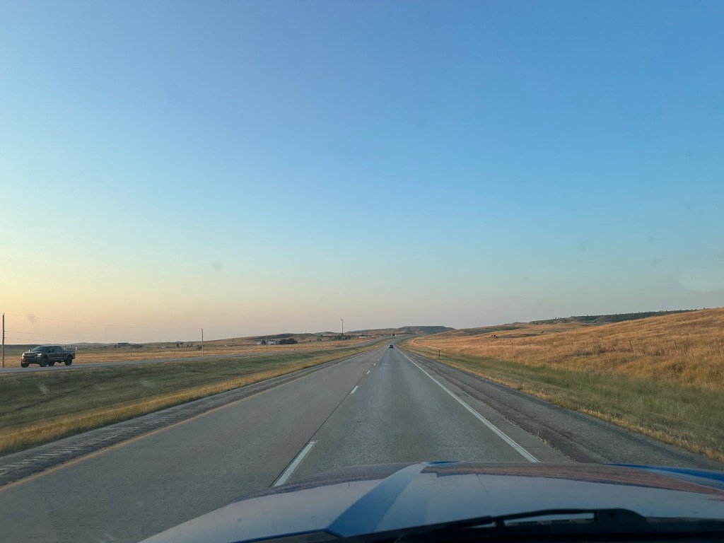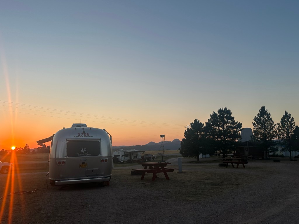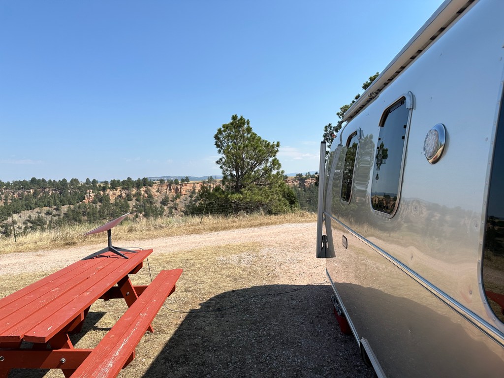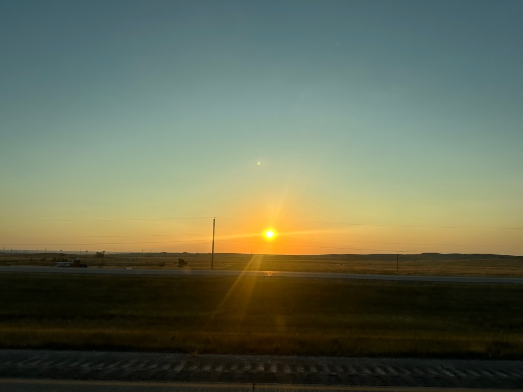 The morning drive from Wyoming into South Dakota was pleasant and shorter than usual. Scenery, wildlife, and sunrises tend to light up our morning drives. As usual, we found a Walmart parking lot to set up for work until lunchtime when we were allowed to check into our site.