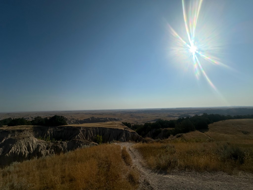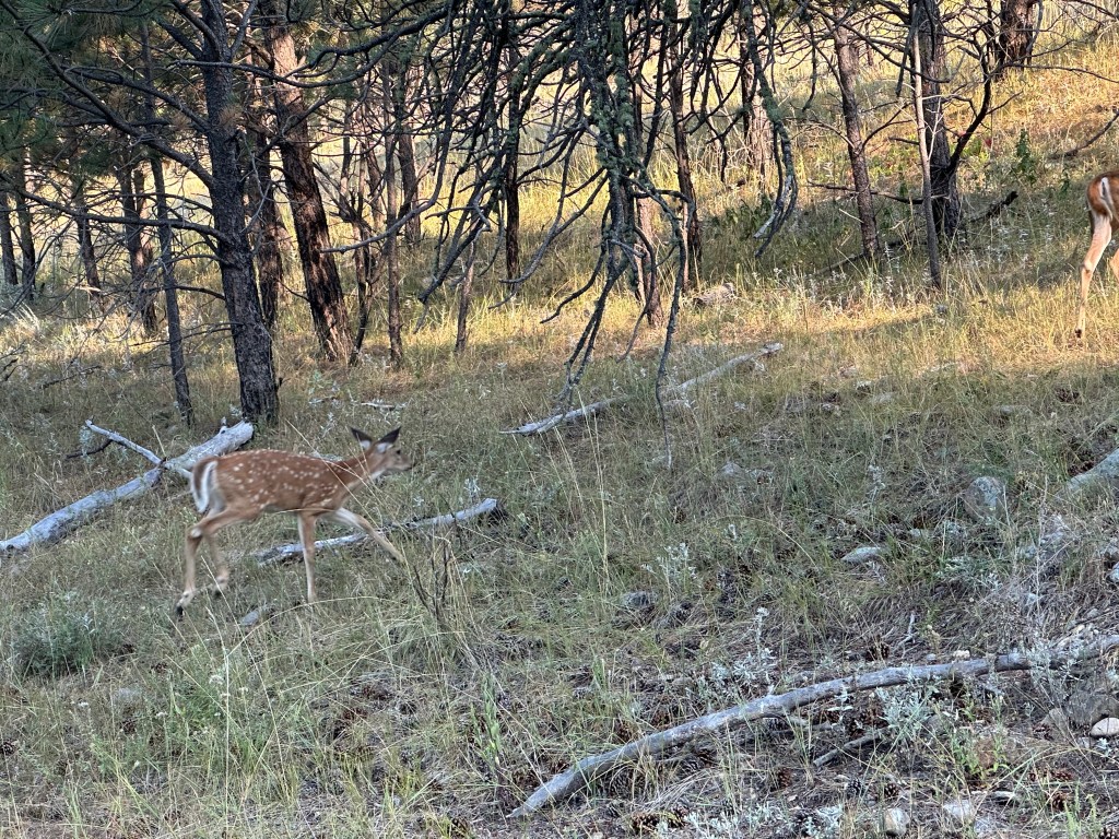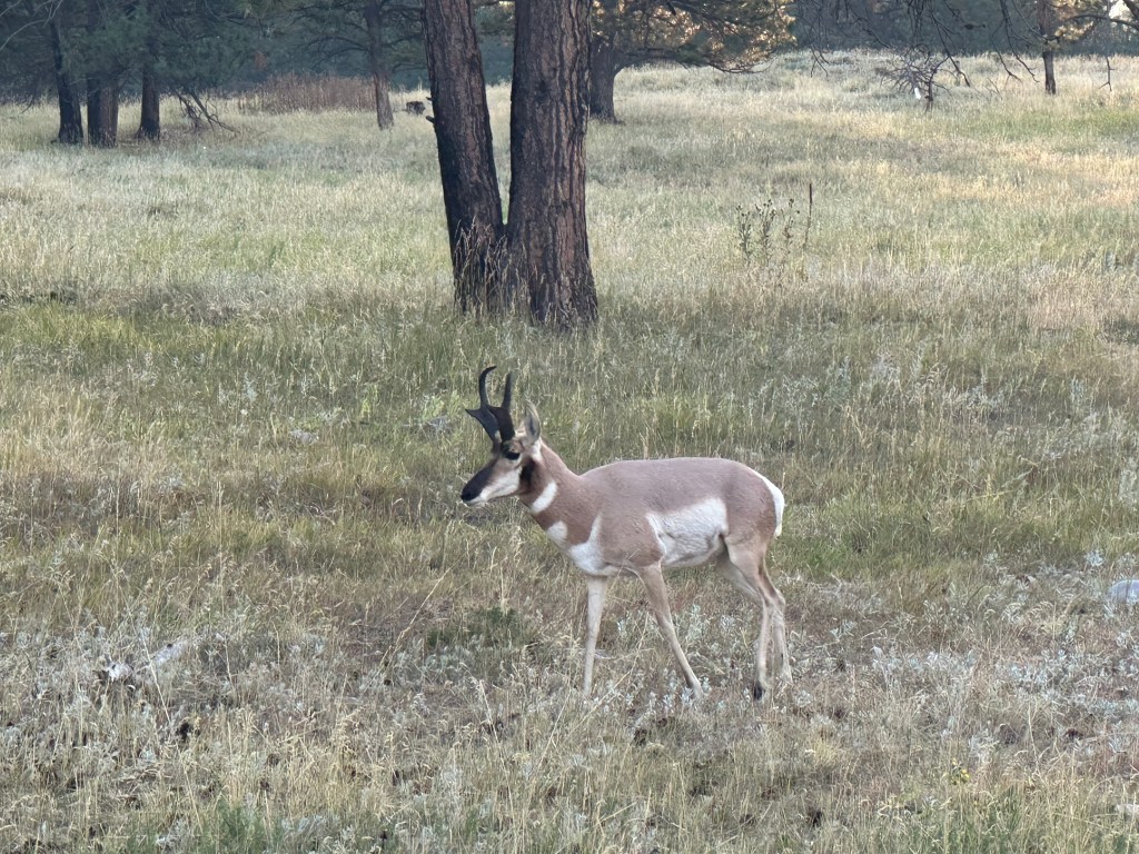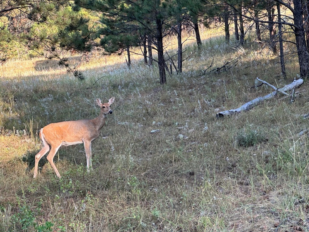 The morning drive from Wyoming into South Dakota was pleasant and shorter than usual. Scenery, wildlife, and sunrises tend to light up our morning drives. As usual, we found a Walmart parking lot to set up for work until lunchtime when we were allowed to check into our site.