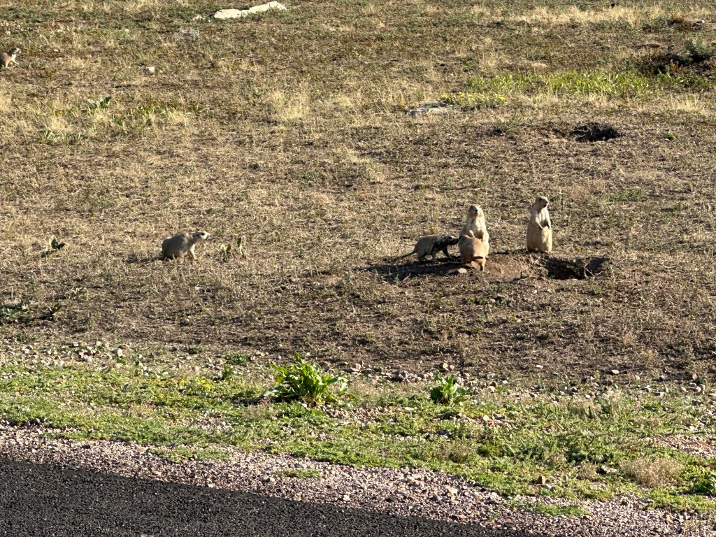 Let’s start with the Prairie Dogs. Recall from our visit to Devil’s Tower that we were surprised by our first encounter with these little chirpers congregating in communities called Prairie Dog Towns and uttering a strange sound somewhere between a squeak and a bark that I liked to call a “squark.” Custer also had several Prairie Dog Towns, so we took advantage of the chance to see these little cuties again, and captured some video along the way.