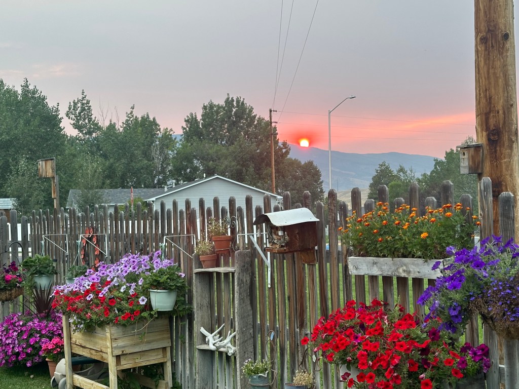 We spent a quiet evening in the trailer enjoying a sunset screened by smoke from a recent fire.