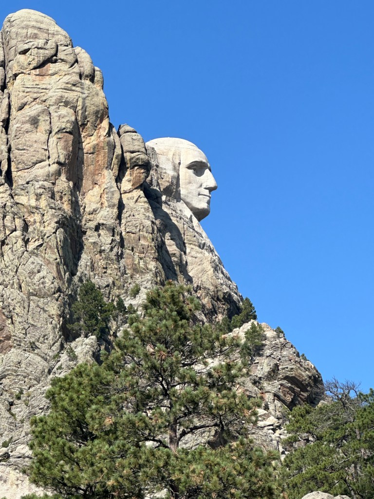 At the end of the Iron Mountain Road, we finally arrived at Rushmore itself. We were excited that we had already purchased our annual National Parks pass, so we could use it once more. As it happens, admission to the Mount Rushmore National Memorial is free, so we did not need our pass. However, parking is $10, and the National Parks pass does not apply. Because, of course. At least the parking garages were relatively spacious and well-organized, so the $10 surprise afforded some convenience.